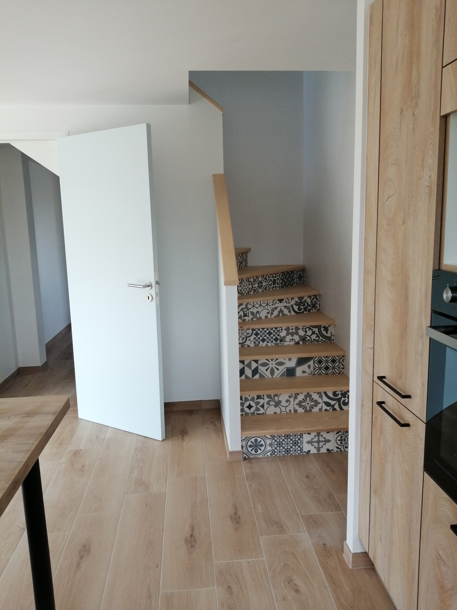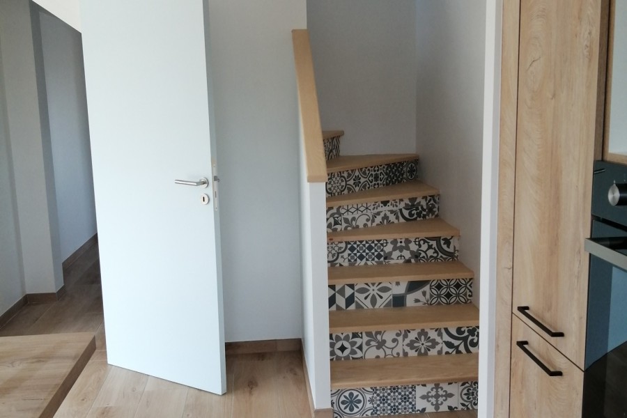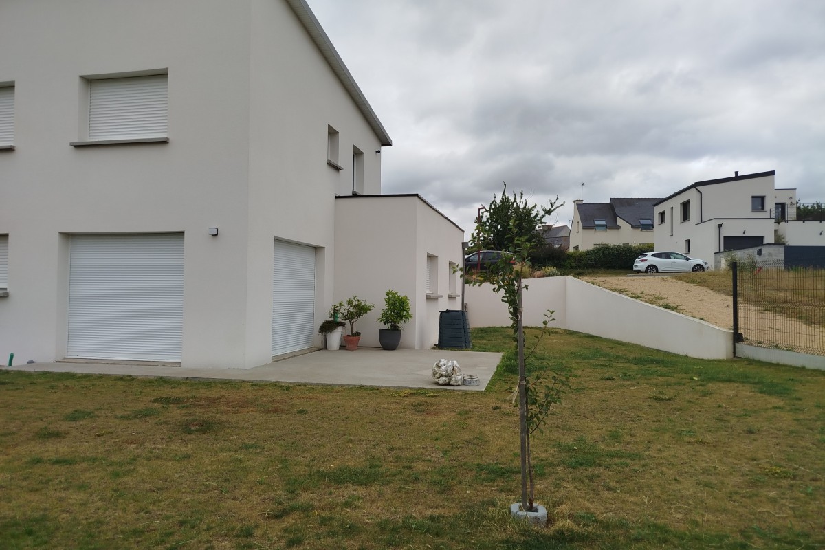 Rdc comprenant : une grande pièce à vivre, un garage, un local technique, une entrée avec wc et escalier, une chambre avec salle d’eau. À l’étage 3 chambres, une salle de bain et un wc.