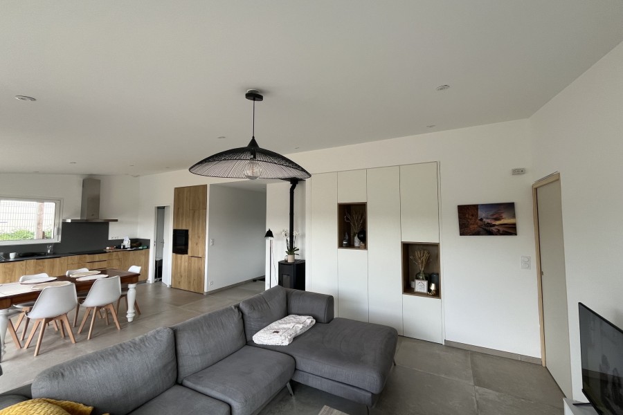 Maison en maçonnerie + isolation en laine de verre 140, 400 en plafond.