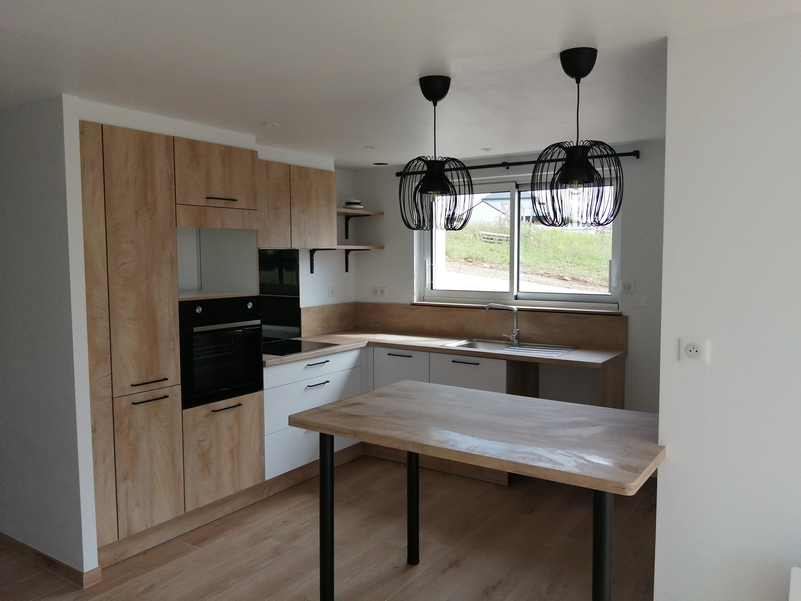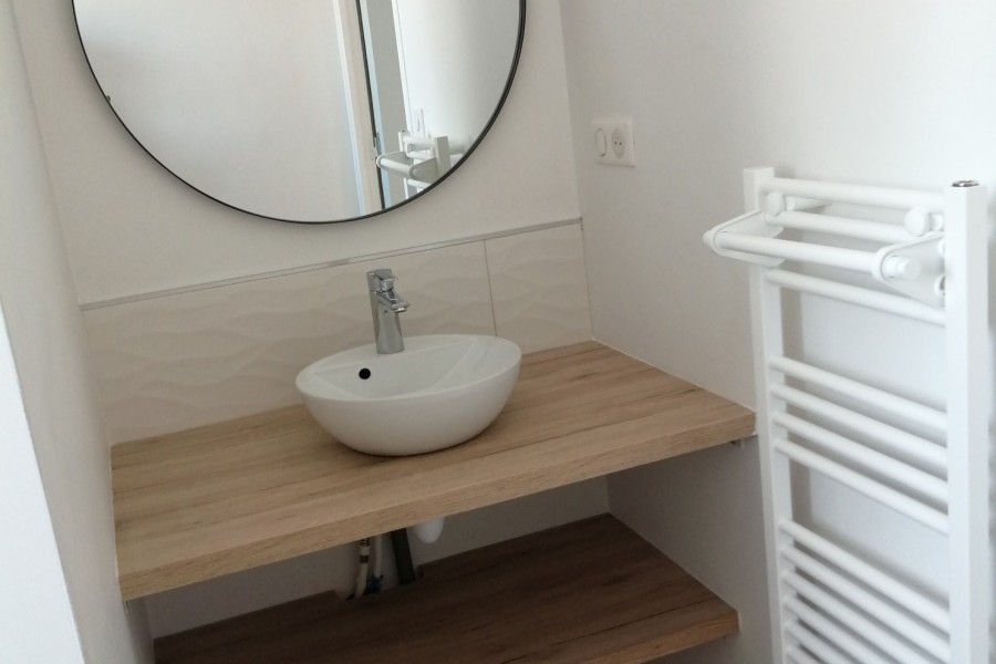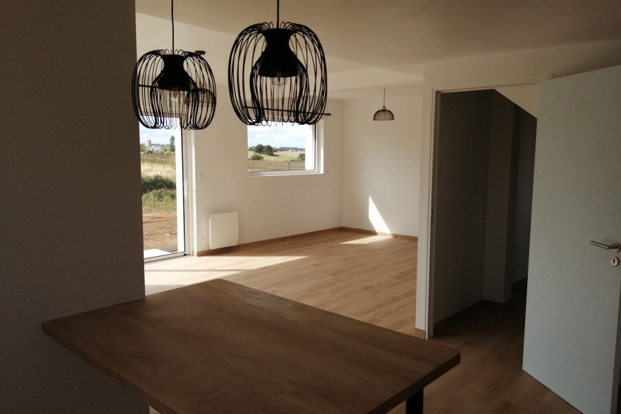 Rdc comprenant : une grande pièce à vivre, un garage, un local technique, une entrée avec wc et escalier, une chambre avec salle d’eau. À l’étage 3 chambres, une salle de bain et un wc.